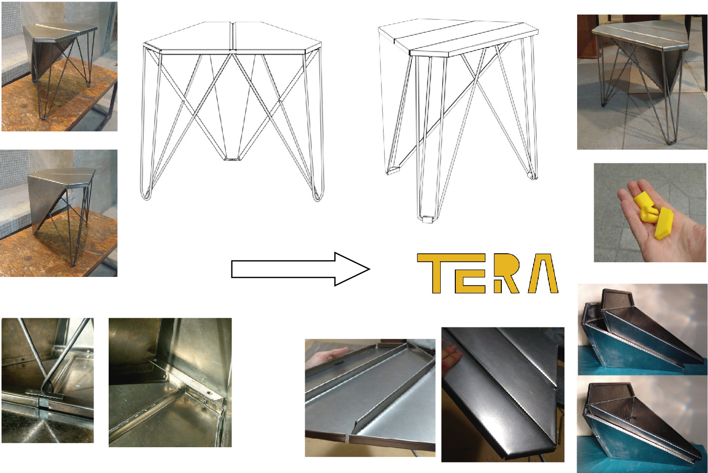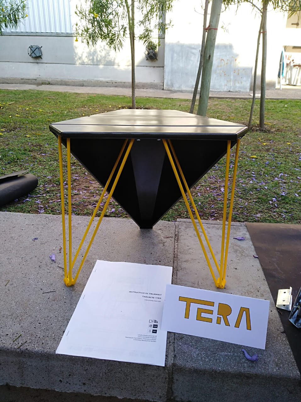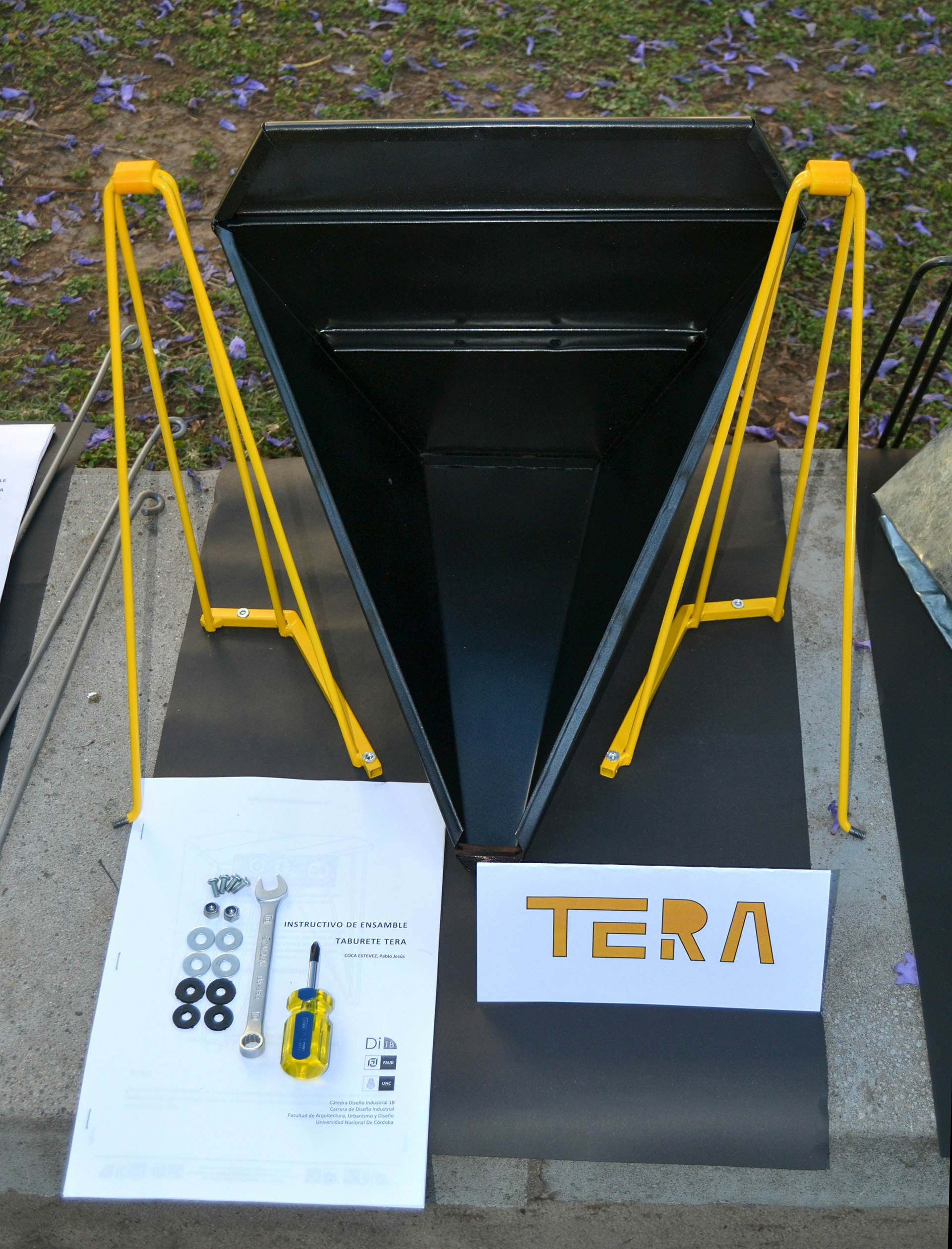 El objetivo del trabajo fue crear un taburete que pudiera ser fabricado por la industria local. El desafío se encontraba en los materiales y en la dificultad de lograr resistencia estructural con ellos: chapa de acero de espesor reducido (0.5mm) y barras de acero