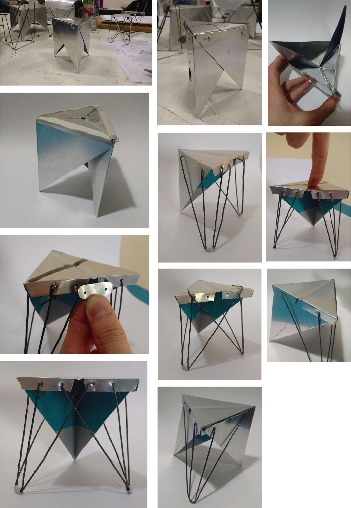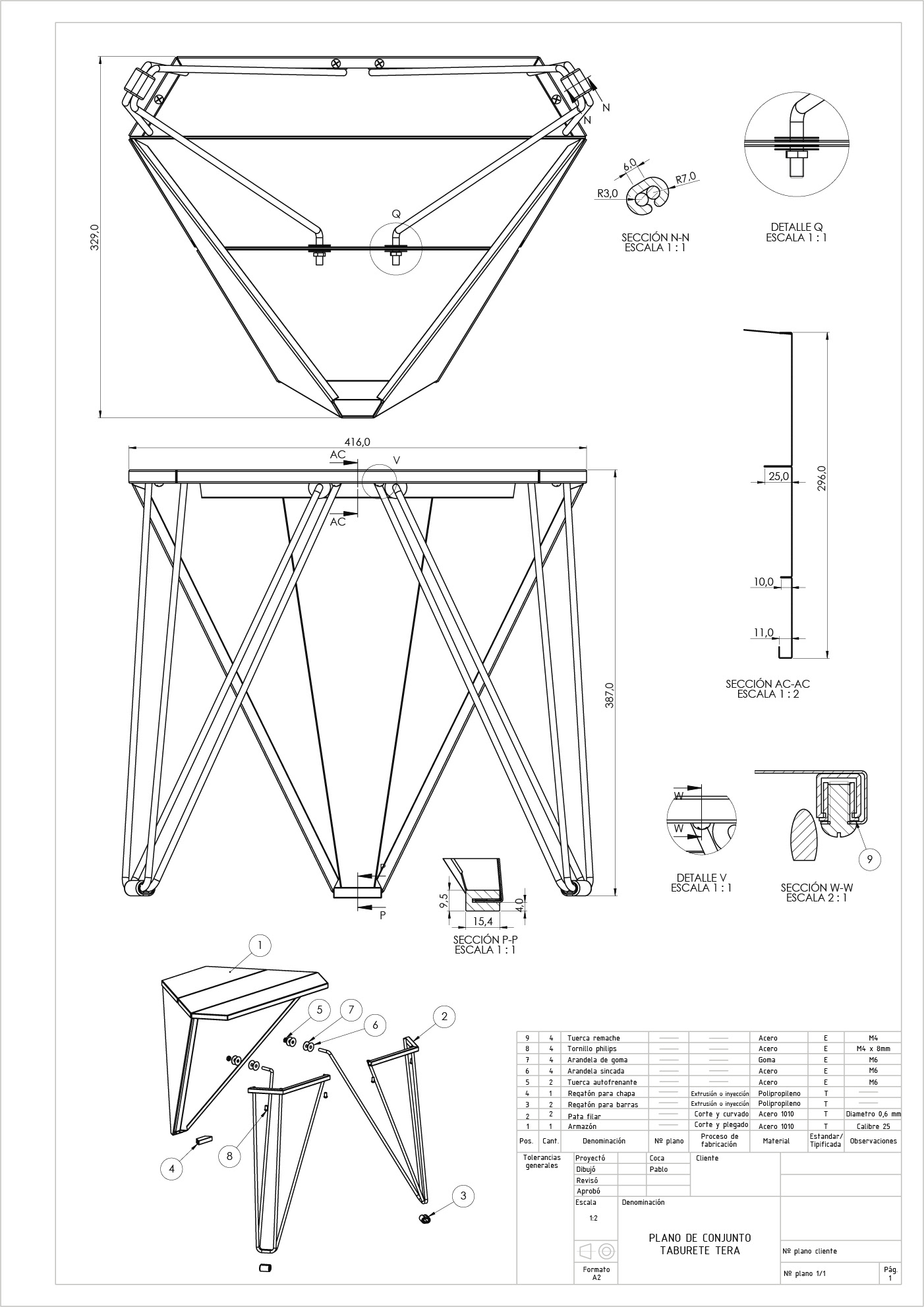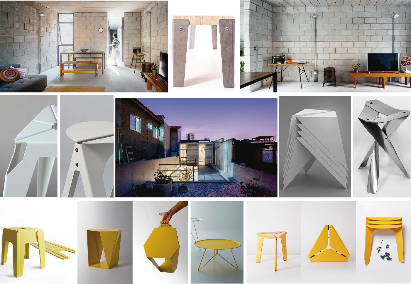 El objetivo del trabajo fue crear un taburete que pudiera ser fabricado por la industria local. El desafío se encontraba en los materiales y en la dificultad de lograr resistencia estructural con ellos: chapa de acero de espesor reducido (0.5mm) y barras de acero